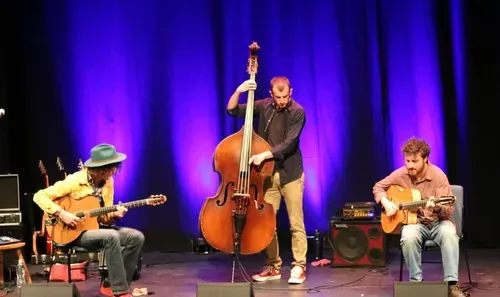 One of the UK’s most exciting guitarists, Remi Harris is joined by double bassist Tom Moore and rhythm guitarist Chris Nesbitt to present an enthralling evening of Gypsy Jazz and Blues. Combining musical virtuosity with passion and flair, this dynamic trio deliver a mesmerising show inspired by Django Reinhardt, Peter Green, Wes Montgomery, Jimi Hendrix and Joe Pass.