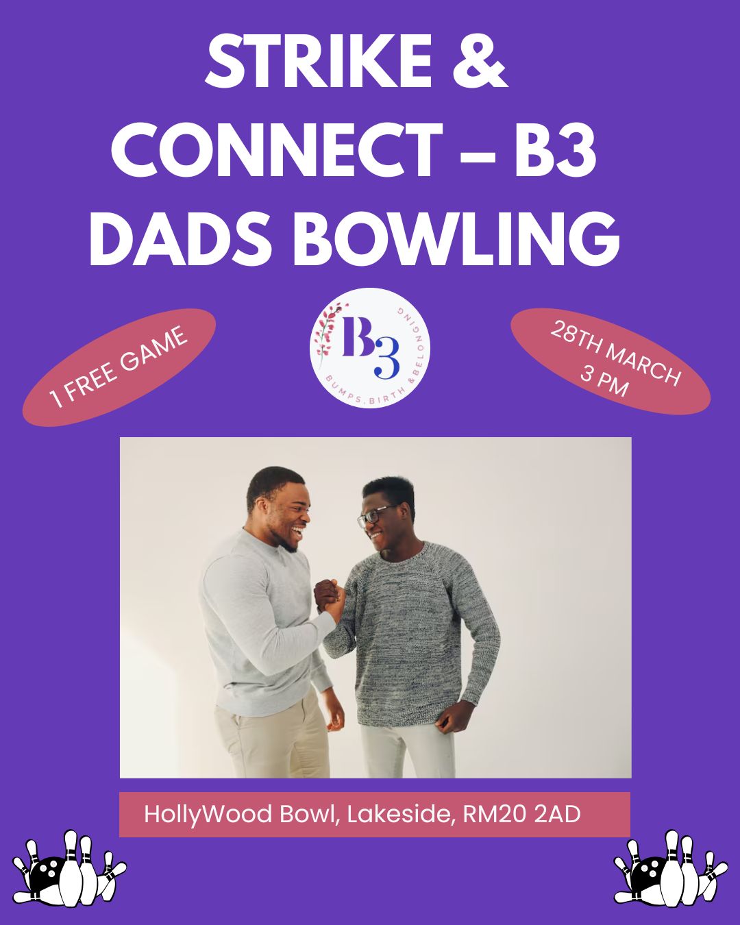 Strike & Connect is your chance to step out of dad-mode for a moment, lace up those bowling shoes, and spend real time with other dads in the community. Whether you're a seasoned striker or someone who's been in the gutter more times than you'd like to admit, it doesn't matter — this is less about the score and more about the connection.