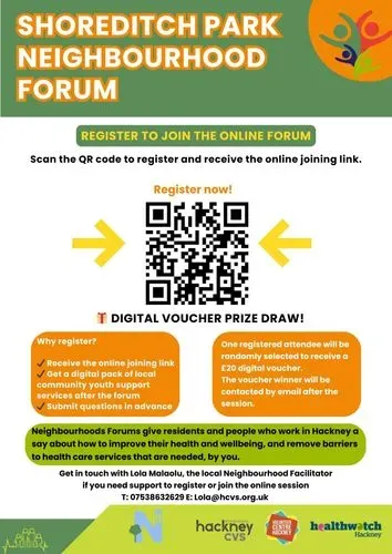 The Shoreditch Park Neighbourhood Forum gives parents, carers, local residents, and community organisations the opportunity to learn about local, community-based mental health and wellbeing support for young people. This online forum is a space to build understanding, ask questions, and explore accessible support options beyond statutory services.