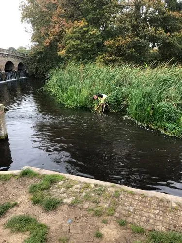 Just downstream from Five Arch Bridge is a reed bed that several years ago was non-existent. It reached the point where it was completely as wide as the river and became an obstruction. It's been slowly reduced, but it needs a final concerted effort to bring it properly under control. The reed mat takes a bit of effort to dig out, hence the need for a reasonable level of fitness.